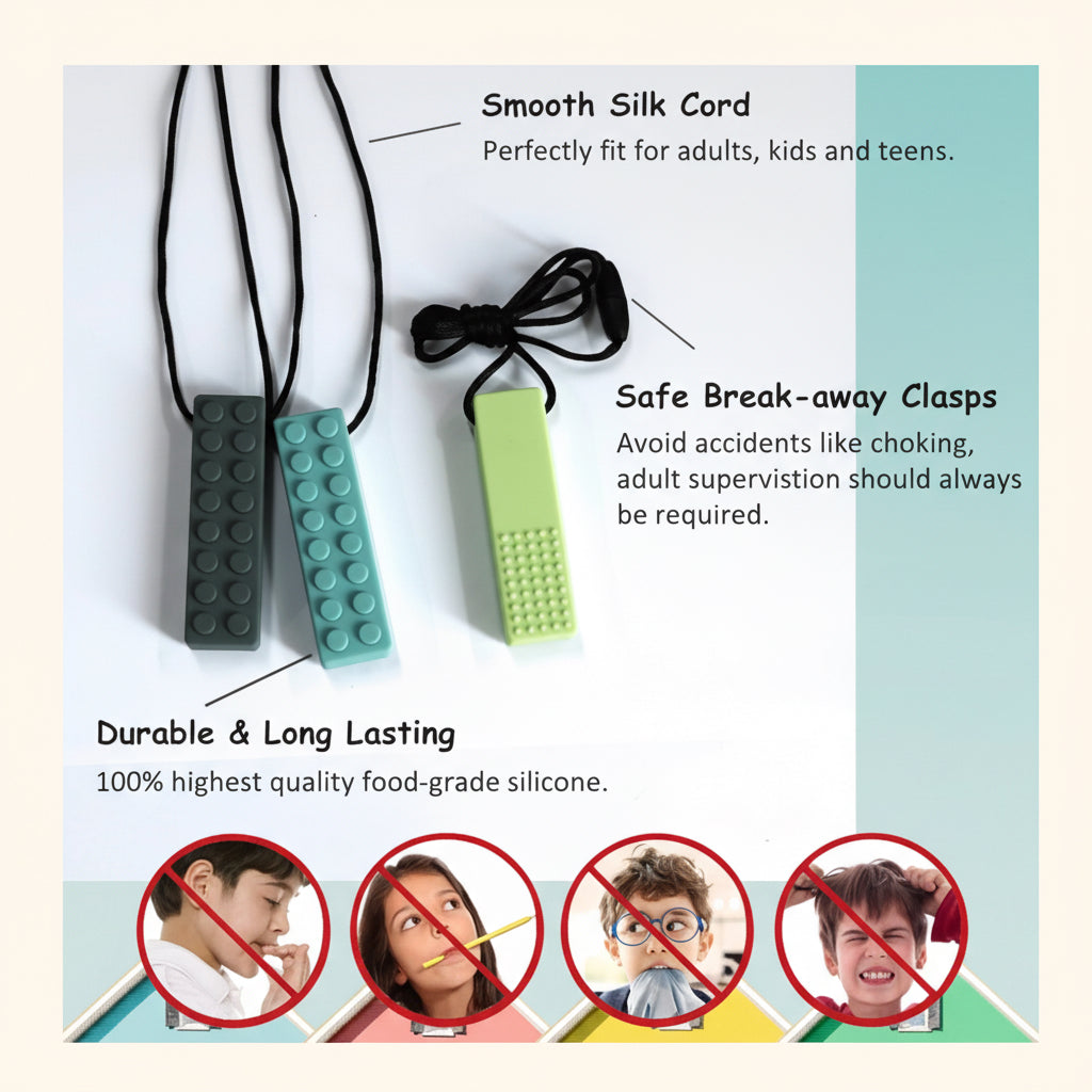 Este collar sensorial de silicona grado alimenticio está diseñado para niños, adolescentes y adultos que necesitan una forma segura y discreta de liberar tensión, mejorar el enfoque o reducir hábitos como morder lápices, uñas o ropa.