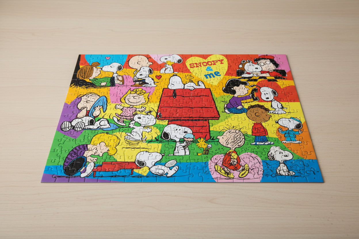 Disfruta un momento de diversión, nostalgia y color con este encantador rompecabezas de Peanuts: Snoopy & Me. Con ilustraciones clásicas de Snoopy, Charlie Brown y el resto de la pandilla, este puzzle es perfecto para relajarte, desconectarte del día a día y compartir tiempo de calidad.