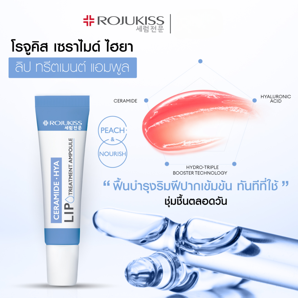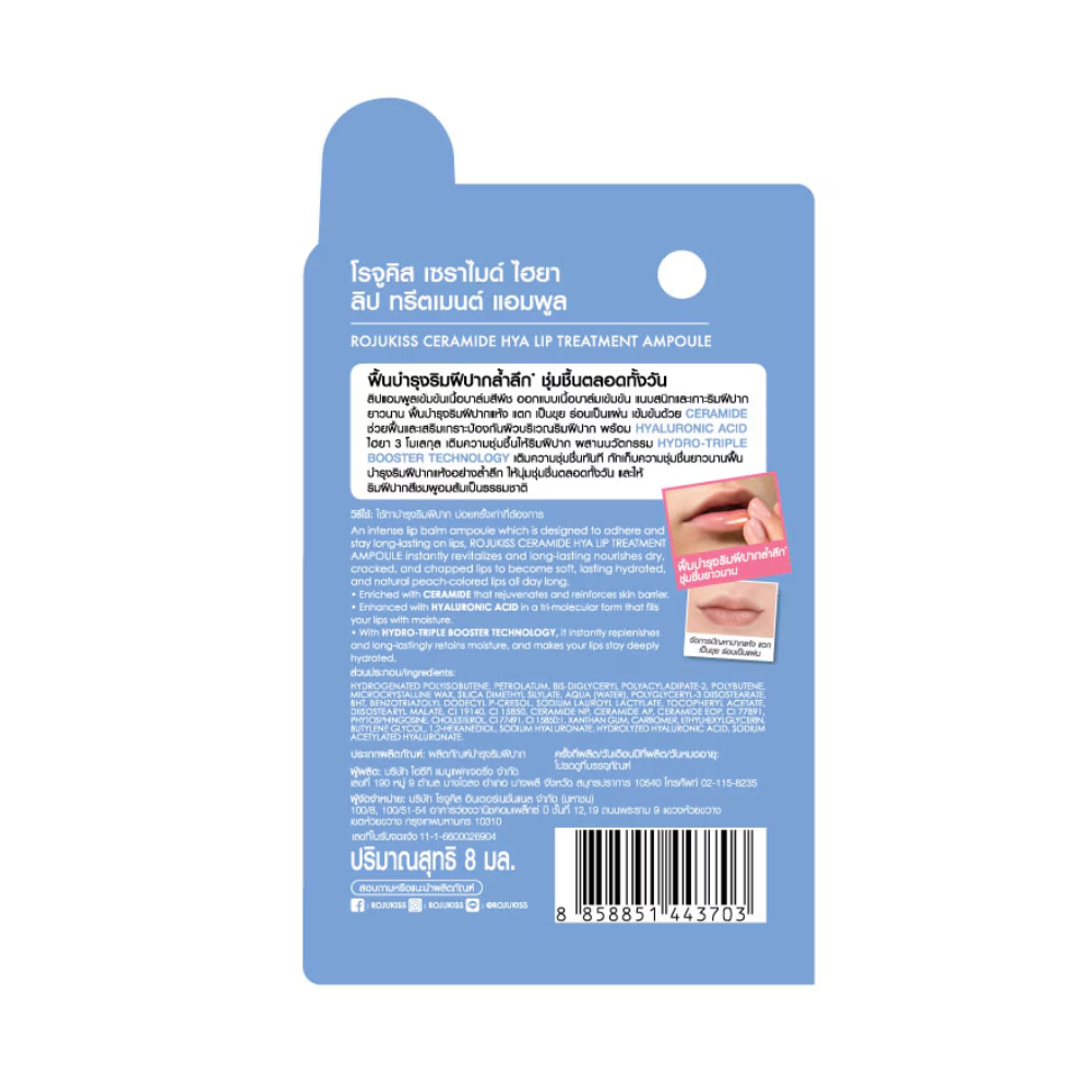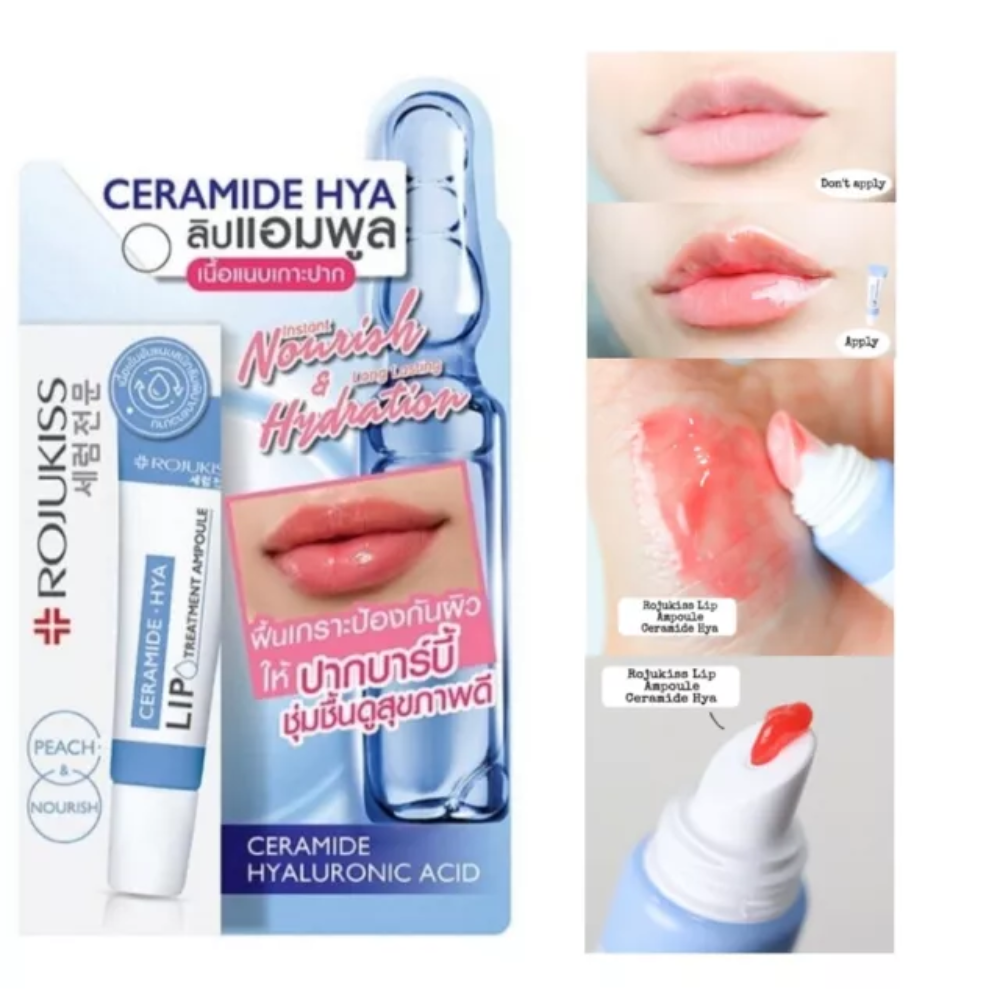 Tratamiento labial en ampolla de Rojukiss formulado para reparar, hidratar y suavizar profundamente los labios. Combina ceramidas y ácido hialurónico para restaurar la barrera natural, aliviar la resequedad y devolver una apariencia más saludable y cuidada desde la primera aplicación.